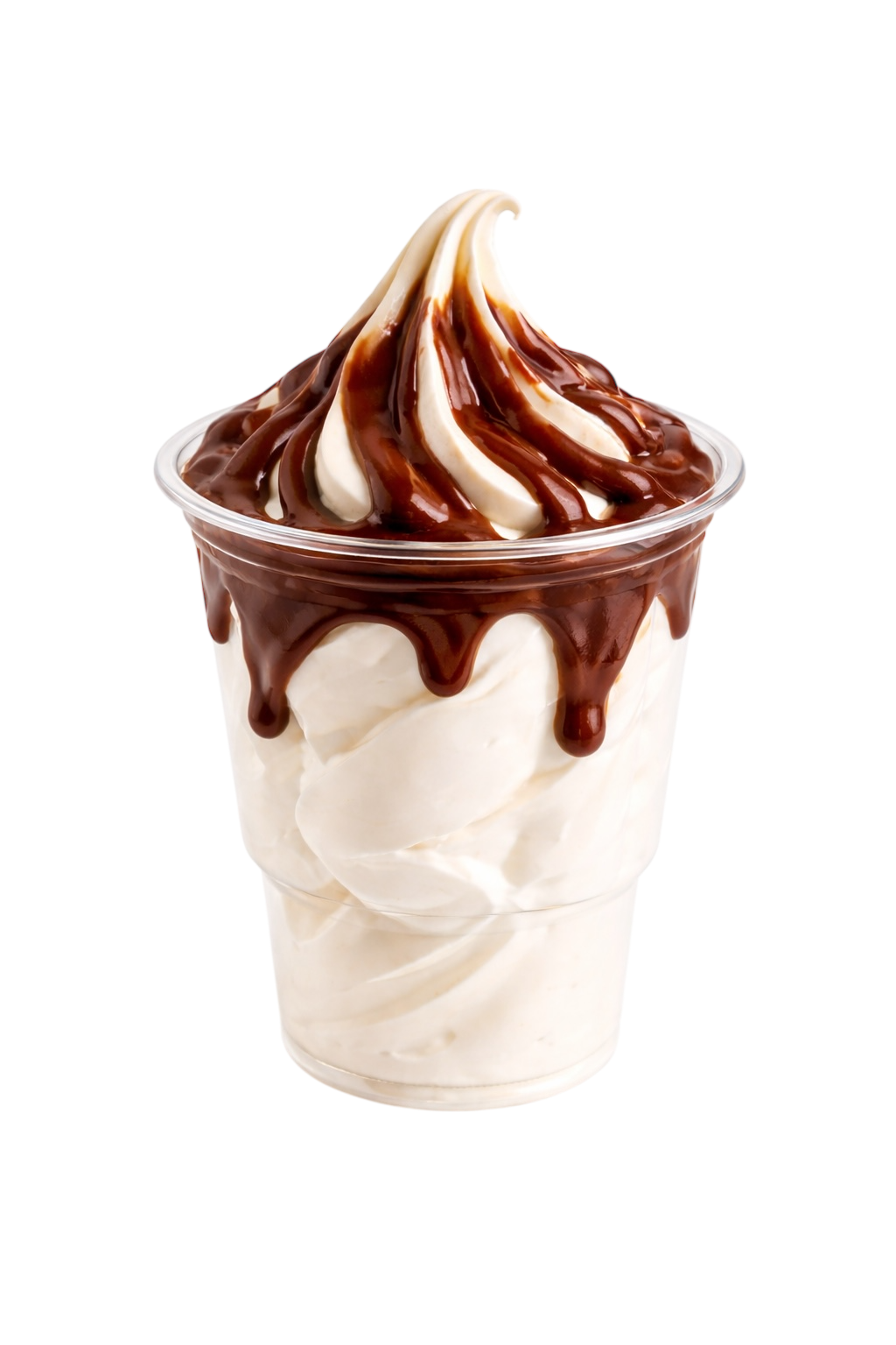 Kremasti sladoled preliven bogatim čokoladnim preljevom koji se savršeno spaja s hladnim okusom sladoleda.