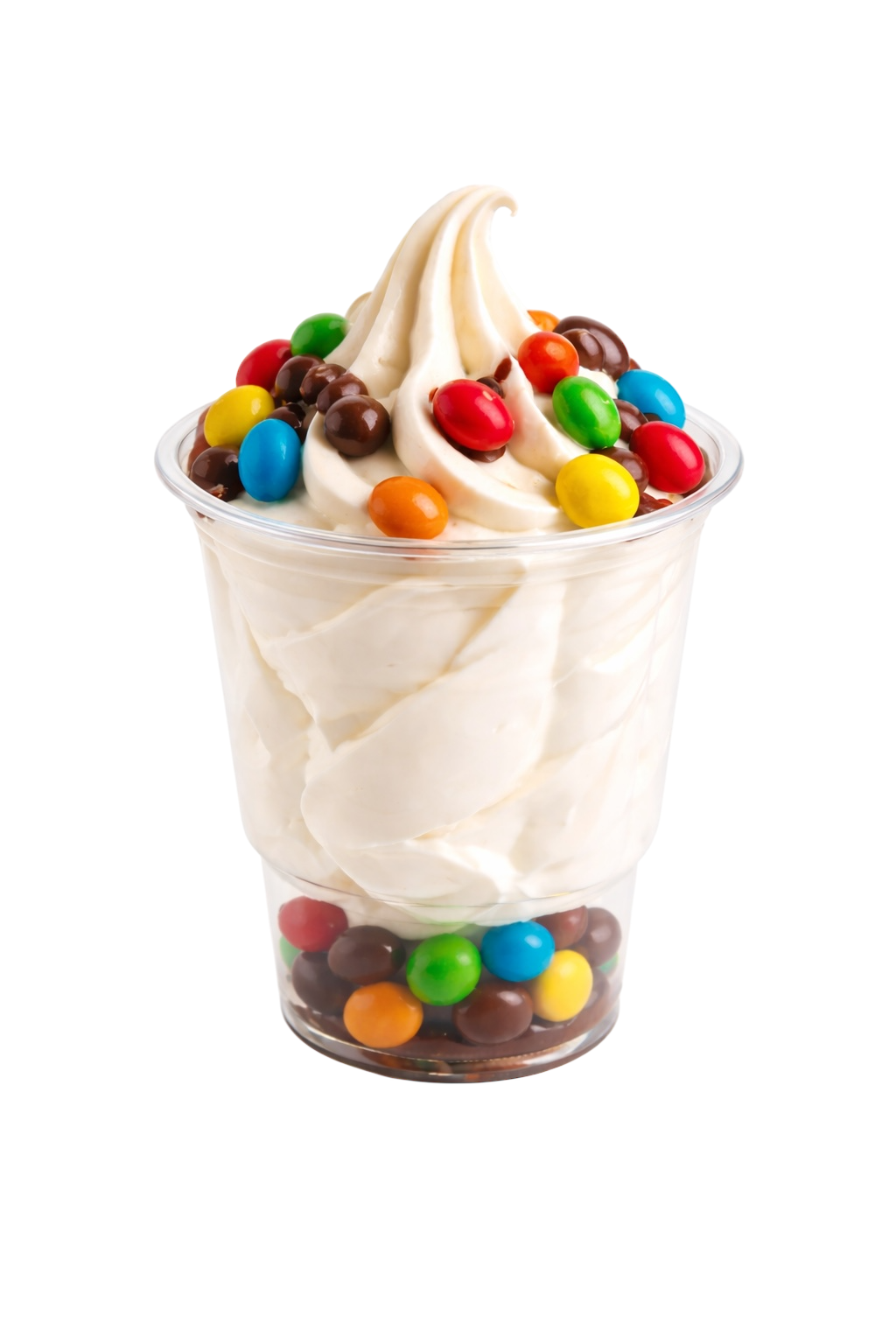 Kremasti sladoled posut šarenim bombonima koji donose hrskavost i veselu eksploziju okusa u svakom zalogaju.