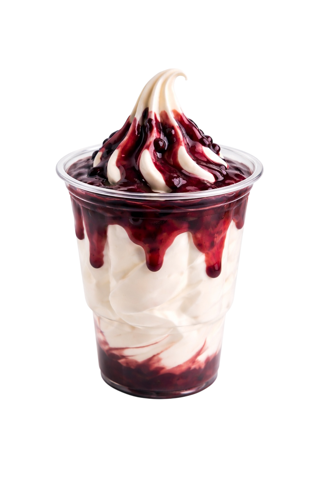 Kremasti sladoled preliven bogatim preljevom od šumskog voća, koji donosi savršenu kombinaciju slatkog i blago kiselkastog okusa.