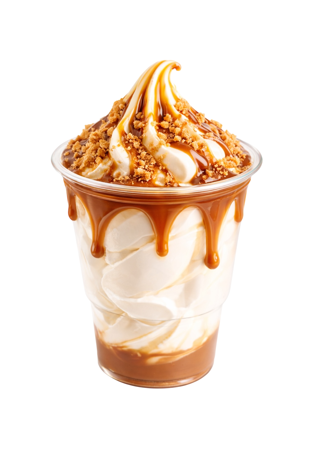 Kremasti sladoled preliven bogatim karamel preljevom koji donodi savršenu ravnotežu slatkoće i kremaste teksture.